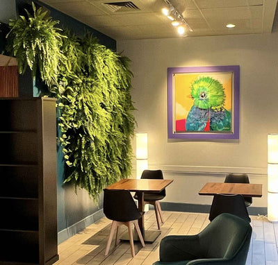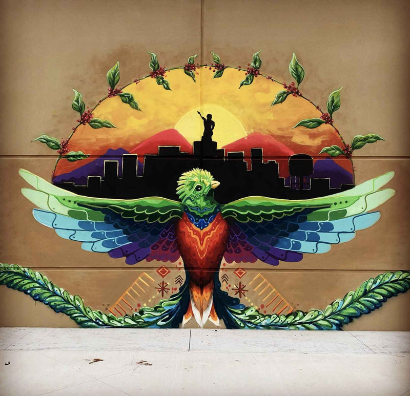 Santos Coffee was honored to feature his talent through a custom-designed mural of the quetzal, Guatemala’s national bird, which also symbolizes the brand’s heritage on its logo. Customers can find this piece at Santos Coffee Hoover.